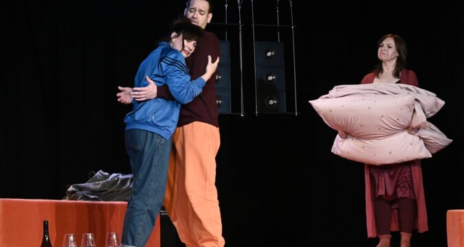 A háromszereplős történet kifejezetten a tartalomra koncentrál. Elképesztően szövegcentrikus, ezért egy pillanatra sem lankadhat a figyelmünk. Egyrészt nem érdemes egyetlen fordulatról sem lemaradni, másrészt a színészek sem engedik, hogy akár csak egy pillanatra is elkalandozzunk. Izgalmas és egyben kissé megdöbbentő felfedezés számomra, hogy mostanában kifejezetten olyan előadások jönnek szembe velem, melyek egy konkrét generáció, a mostani negyvenes korosztály életébe és kihívásaiba adnak mélyebb betekintést. És mivel magam is érintett vagyok ebben, igen mélyre tudnak jutni a lelkemben ezek a történetek, pláne amikor a benne játszó színészek is ezt a generációt képviselik. Így számomra még hitelesebb és átütőbb a történet, ami a színpadon játszódik. És pontosan ezért fognak meg az olyan lélektani történetek, mint az Ex. Nyilván meg kell élni bizonyos kort, túl kell lenni jó pár tapasztalaton, hogy értsük és érezzük a párbeszédek súlyát és tétjét – ha viszont ez az előélet adott, igazán kapaszkodós esténk lesz! Nem mellesleg a komorságot remek humorral oldja a darab.